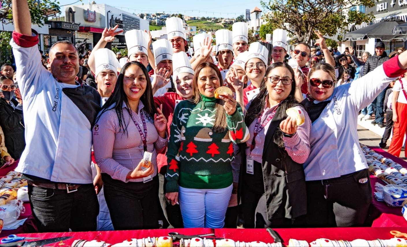 Ensenada, B.C.– Como parte de las acciones para preservar las tradiciones, la alcaldesa Claudia Agatón Muñiz encabezó la celebración de la Mega Rosca de Reyes de más de 500 metros, elaborada por estudiantes de la Escuela de Gastronomía de la Universidad Vizcaya de las Américas, campus Ensenada.