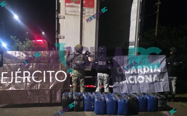 San Quintín, BC.- Un conductor a bordo de un tractocamión que transportaba 115 kilogramos de metanfetamina fue detenido por elementos del Ejército Mexicano y Guardia Nacional en el retén militar ubicado al norte de El Rosario, en el municipio de San Quintín.