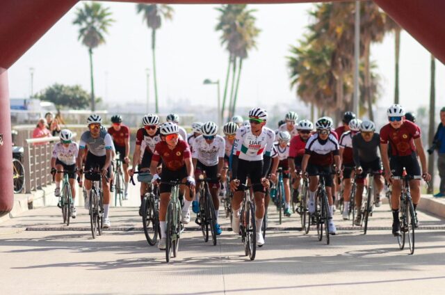 Rosarito.– En apoyo a ciclistas de la entidad que se preparan para competir en el deporte de alto rendimiento, la gobernadora Marina del Pilar Avila Olmeda encabezó la Rodada Nacional de Inicio de Año 2026 en el Baja California Center, circuito de 20 kilómetros en el que participaron los reconocidos ciclistas ensenadenses Isaac del Toro, Eder Frayre y David Ruvalcaba.