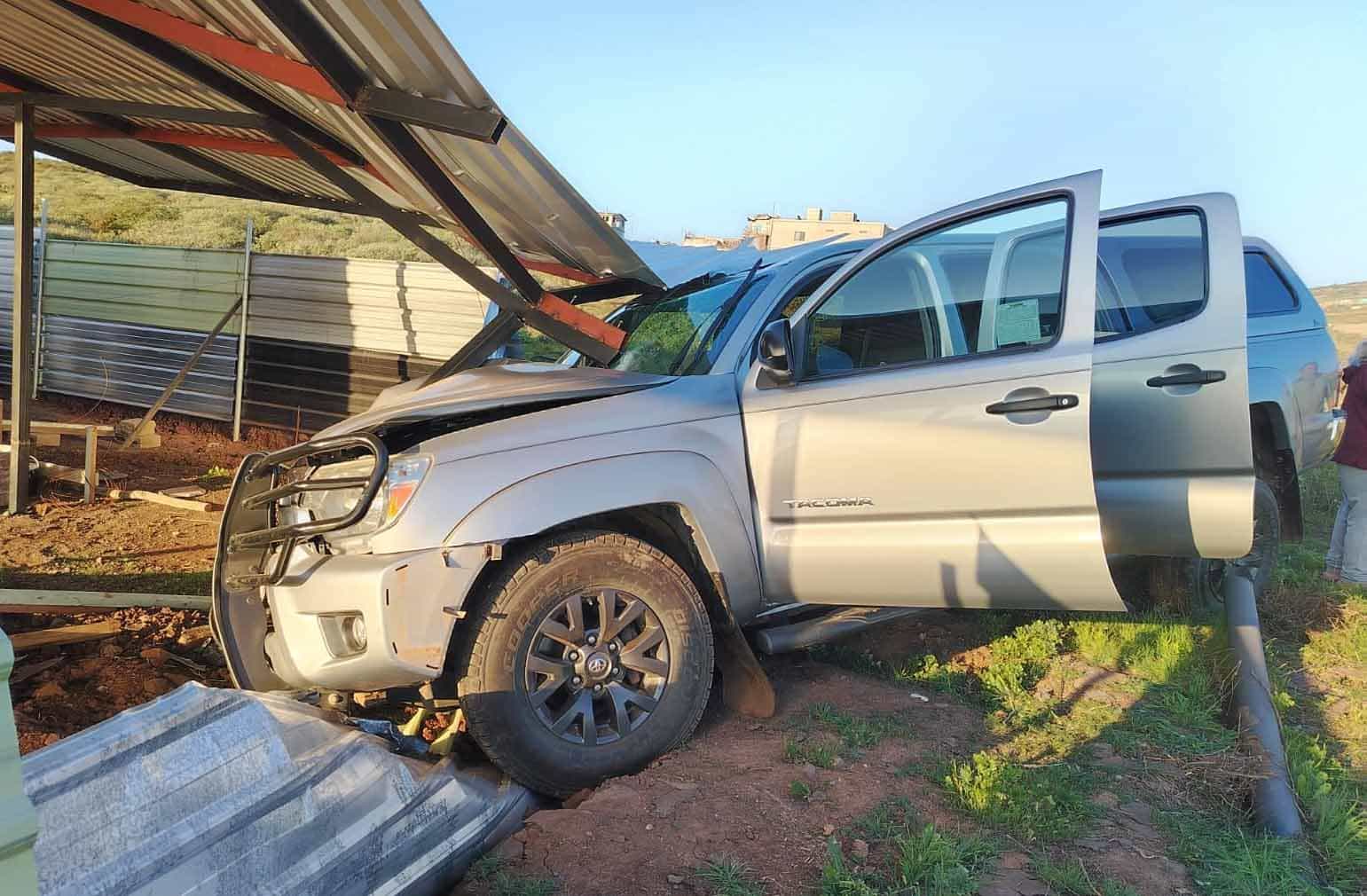 En el sitio localizaron como vehículo responsable una camioneta marca Toyota, línea Tacoma, color gris, modelo 2015. Posteriormente identificaron como afectado un objeto fijo consistente en láminas de metal perimetrales de un domicilio.