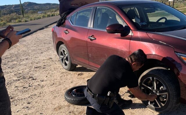 En consecuencia, los policías le brindaron ayuda para reemplazar el neumático y permitirle que reanudara su marcha.