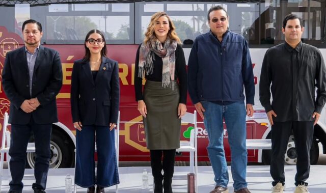 Mexicali, BC.- La primera ruta de transporte público 100 por ciento eléctrica en Mexicali mejorará la calidad de vida de la población, señaló la gobernadora Marina del Pilar Avila Olmeda al encabezar la presentación de un camión del programa Movilidad que Transforma y RESPIRA hacia modelos urbanos más modernos, eficientes y responsables con el medio ambiente.
