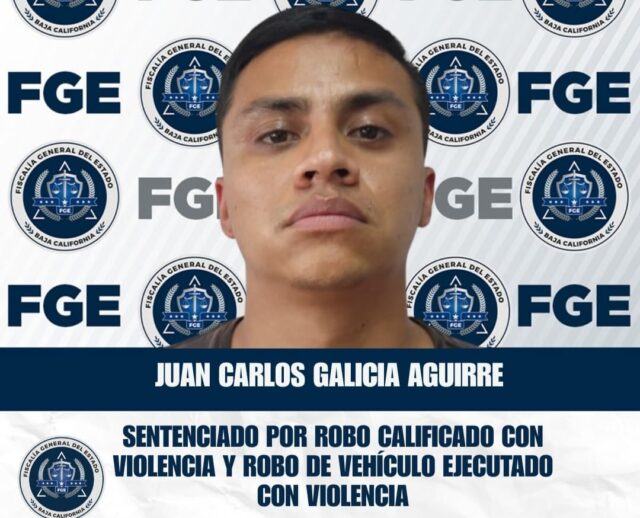 Ensenada.- La Fiscalía Regional de Ensenada, a través de la Unidad de Investigación de Robos, logró que Juan Carlos Galicia Aguirre fuera sentenciado a 7 años y 4 meses de prisión, además de una multa de 28,866 pesos, por los delitos de robo calificado con violencia y robo de vehículo ejecutado con violencia.