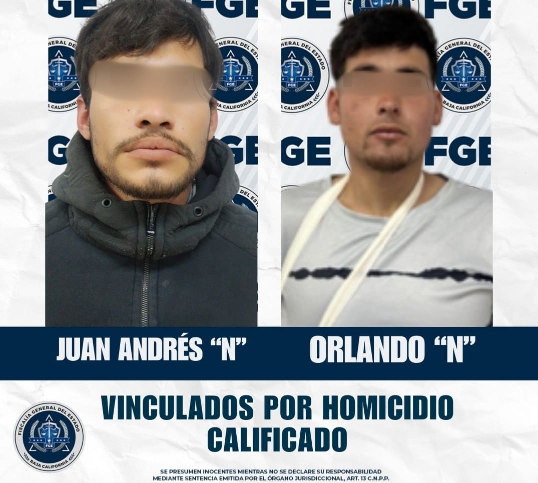 San Quintín.– Al ser señalados de un homicidio ocurrido en el 2024 en el ejido Graciano Sánchez, la Fiscalía General del Estado obtuvo la vinculación a proceso de Orlando “N” y Juan Andrés “N” por el delito de homicidio calificado con premeditación y ventaja.