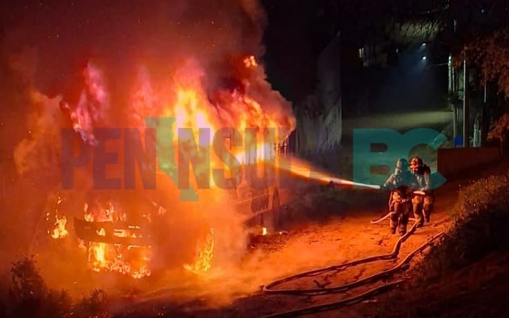 Ensenada, BC.- Un camión se incendió en las primeras horas de este lunes mientras se encontraba estacionado en el ex ejido Ruiz Cortinez en la ciudad de Ensenada.