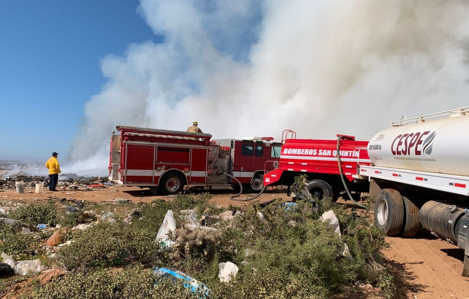 También acudieron pipas de Servicios Públicos Municipales y la Comisión Estatal de Servicios Públicos de Ensenada (CESPE).