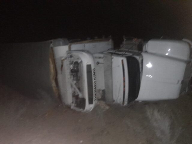 Conductor sufre volcadura en troque en las inmediaciones de Punta Prieta en el sur de San Quintín