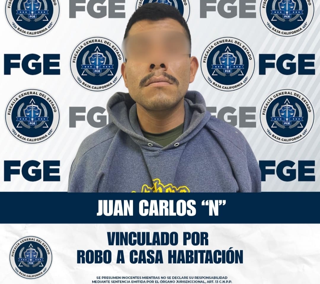 San Quintín, BC.- La Fiscalía Regional de San Quintín logró la vinculación a proceso de Juan Carlos “N” por su presunta responsabilidad en el delito de robo calificado a casa habitación.