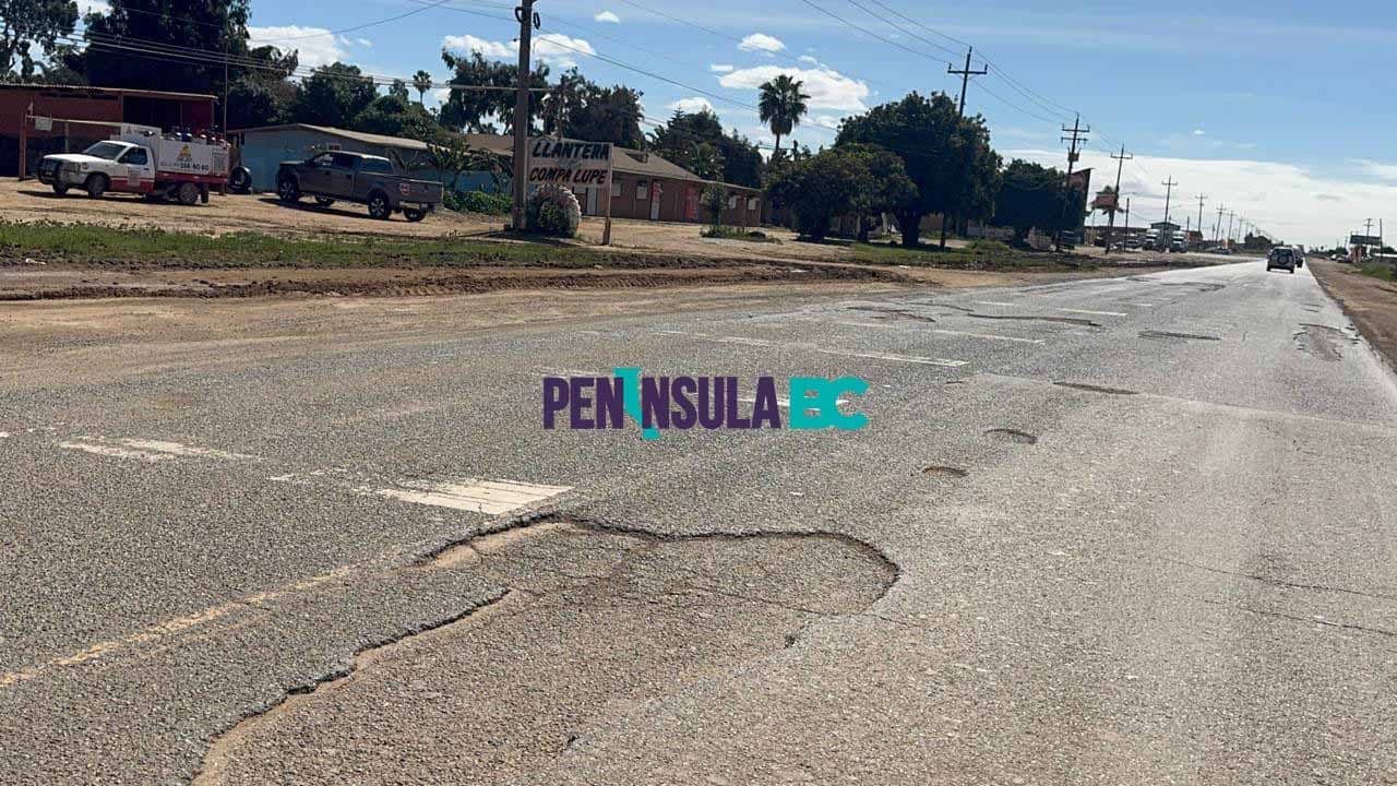 San Quintín, BC.- Lo que inició como pequeños agrietamientos se ha transformado en una verdadera «zona de guerra» para los automovilistas que transitan por la carretera a la altura del Ejido Padre Kino, en San Quintín, principalmente durante la noche a falta de iluminación adecuada.