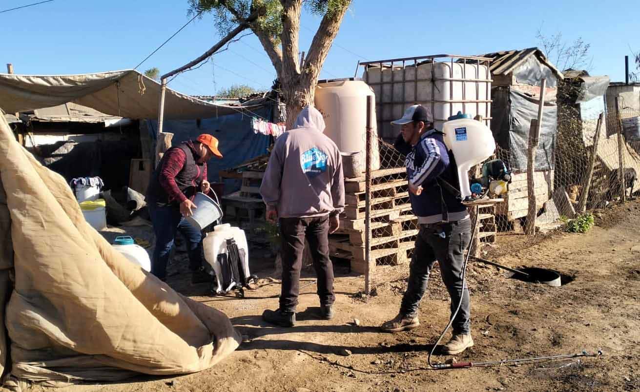 San Quintín, BC. – Con la finalidad de erradicar la proliferación de garrapatas, Bienestar Social Municipal y la Secretaría de Salud del Estado coordinaron una jornada de fumigación contra la Rickettsiosis en la colonia López, en el municipio de San Quintín.