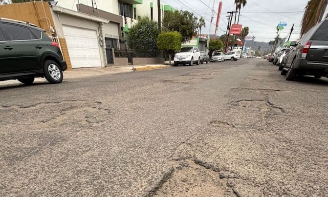 Ensenada, BC.- La avenida Vicente Guerrero, entre la Diamante y el bulevar Ramírez Méndez, tiene más de 100 baches y diferentes tipos de daño en su pavimento en la ciudad de Ensenada.