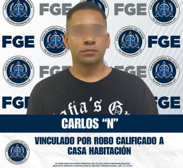 San Quintín, BC.- La Fiscalía Regional de San Quintín logró la vinculación a proceso y la imposición de la medida cautelar de prisión preventiva en contra de Carlos “N”, por su probable responsabilidad en el delito de robo calificado a casa habitación.