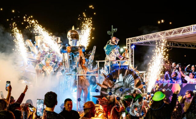 Ensenada BC.- Con un espectáculo de luces neón, música y alegría, este sábado celebraron el primer desfile nocturno de carros alegóricos y comparsas del Gran Carnaval de Ensenada 2026.