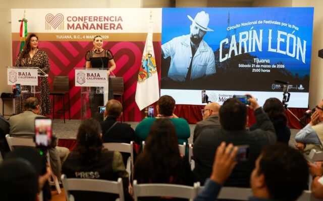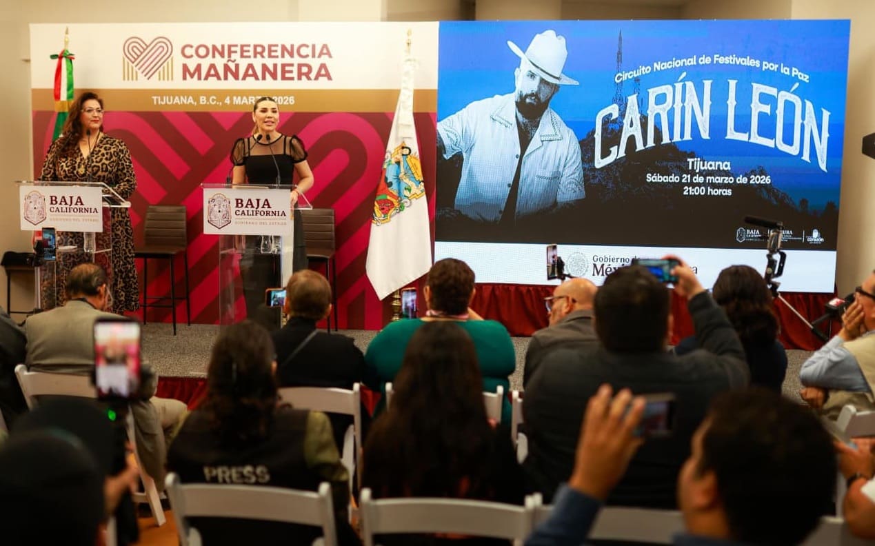 Tijuana, BC.– Como parte de la Estrategia de Paz que impulsa la presidenta Claudia Sheinbaum Pardo, al acceso, la gobernadora Marina del Pilar Avila Olmeda anunció que el próximo 21 de marzo, el cantante Carín León ofrecerá un concierto gratuito en Tijuana, como parte del arranque del Circuito Nacional de Festivales por la Paz.
