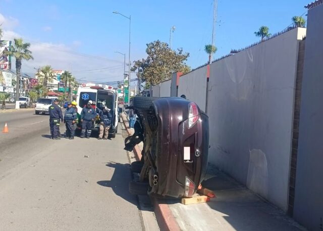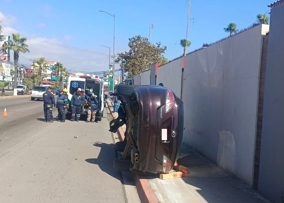 La Dirección de Seguridad Pública Municipal informó que alrededor de las 14:03 horas reportaron del C5 sobre un choque con volcadura ocurrido en el cruce del bulevar Fernando Consag y Teniente Azueta, en la zona centro.