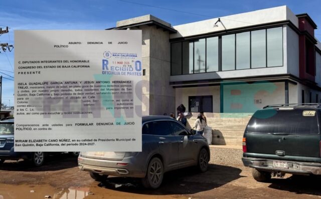 San Quintín, BC.- Dos nuevas denuncias de juicio político contra la presidenta de San Quintín, Miriam Elizabeth Cano Núñez, fueron interpuestas este miércoles 11 de marzo en el Congreso del Estado, además de ampliarse la primera ingresada el 10 de febrero del presente año.