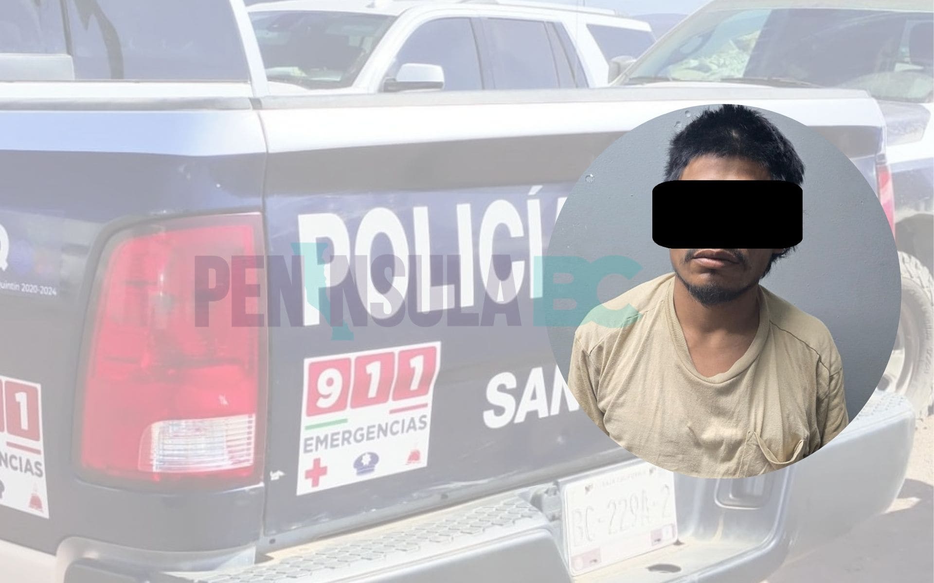 San Quintín, BC.- Aparentemente tras comportarse de manera impertinente bajo los influjos de una droga, además de amenazar con suicidarse, la Policía Municipal detuvo a Jony, de 28 años, en el fraccionamiento Las Misiones, municipio de San Quintín.