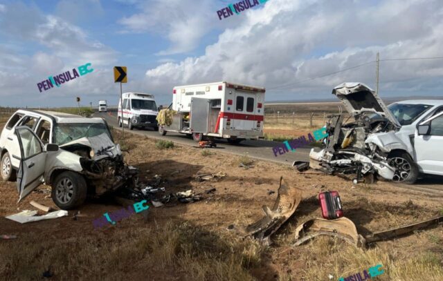 Ensenada, BC.- Una mujer y un joven resultaron lesionados tras un choque frontal sobre la carretera cerca del Punta Colonet, en el sur de Ensenada.