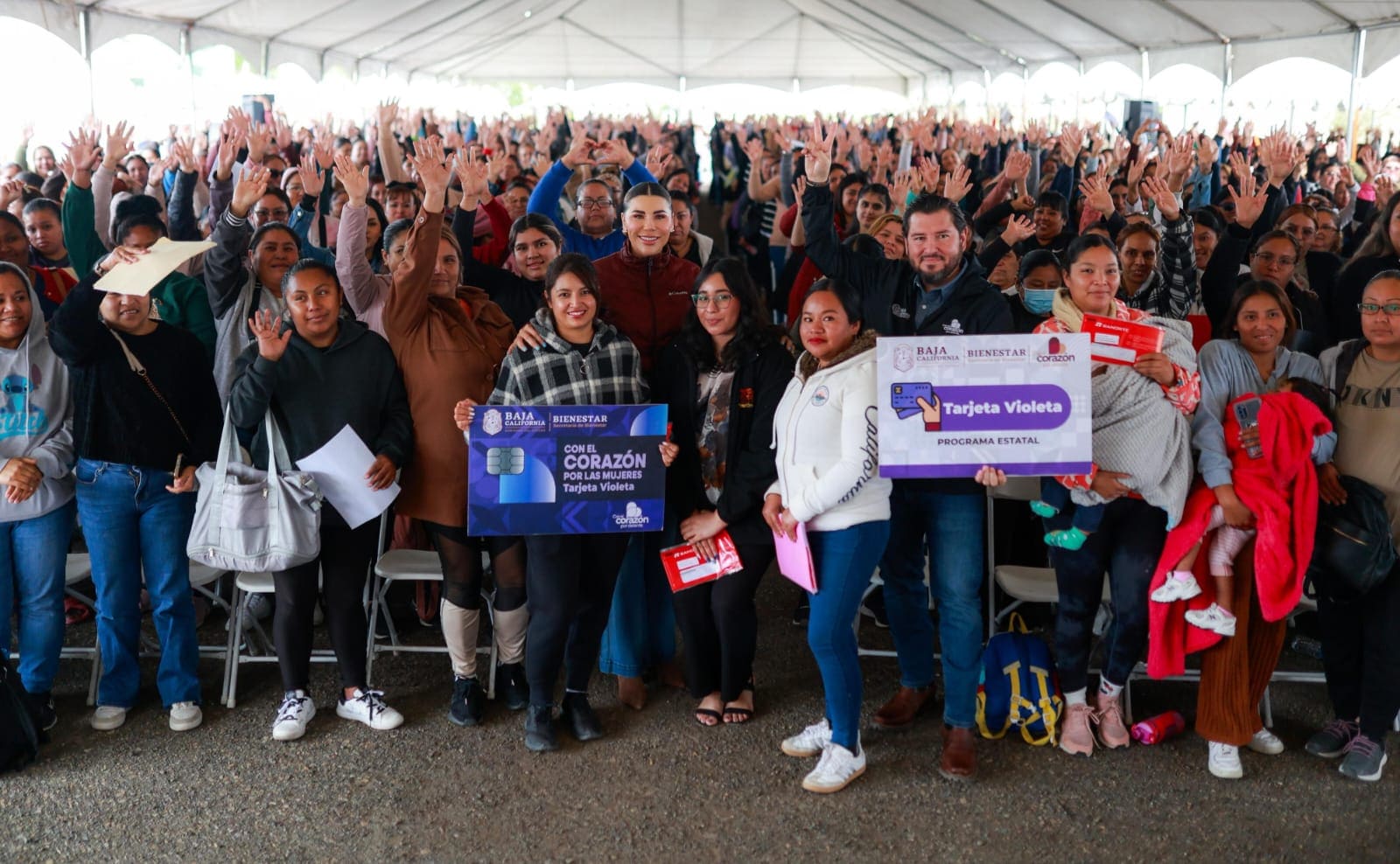 Tijuana, BC.- En busca de que más mujeres puedan seguir estudiando y emprendiendo, la gobernadora Marina del Pilar Avila Olmeda encabezó en Tijuana la entrega de reposiciones de la Tarjeta Violeta para mujeres jefas de familia, programa que actualmente beneficia a más de 100 mil mujeres en Baja California.