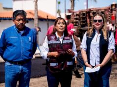Acompañada por la directora de Infraestructura, Paola Avelar Espinoza, y la titular de Bienestar Social, Martha Odette Román Ibáñez, la presidenta municipal señaló que esta pavimentación surgió de solicitudes recabadas en el programa Gabinete en Campo, a las que se les dio seguimiento hasta concretar el acceso a recursos federales.