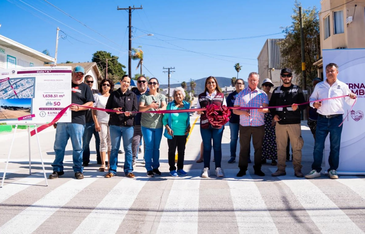 Ensenada BC.- Con una inversión superior a los 2.7 millones de pesos, el Gobierno de Ensenada inauguró la pavimentación con concreto hidráulico de la calle A entre Encino y Fresno de la colonia Granjas El Gallo.