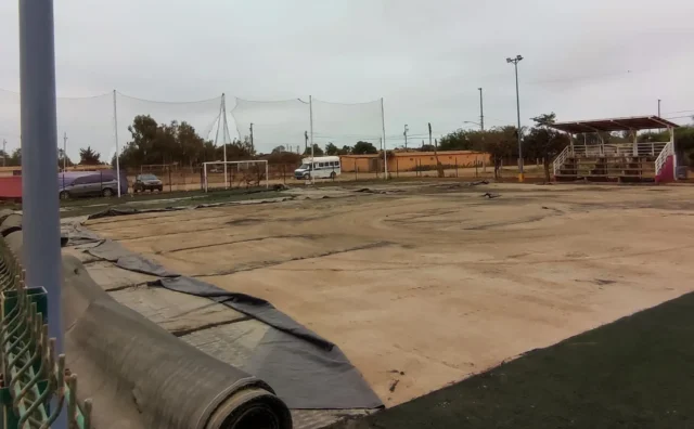 San Quintín, BC. – Como parte del Programa del Mundial Social, a cargo del Gobierno Federal, iniciaron la rehabilitación de la cancha de fútbol 7 ubicada en la colonia Nueva Era, en el municipio de San Quintín.