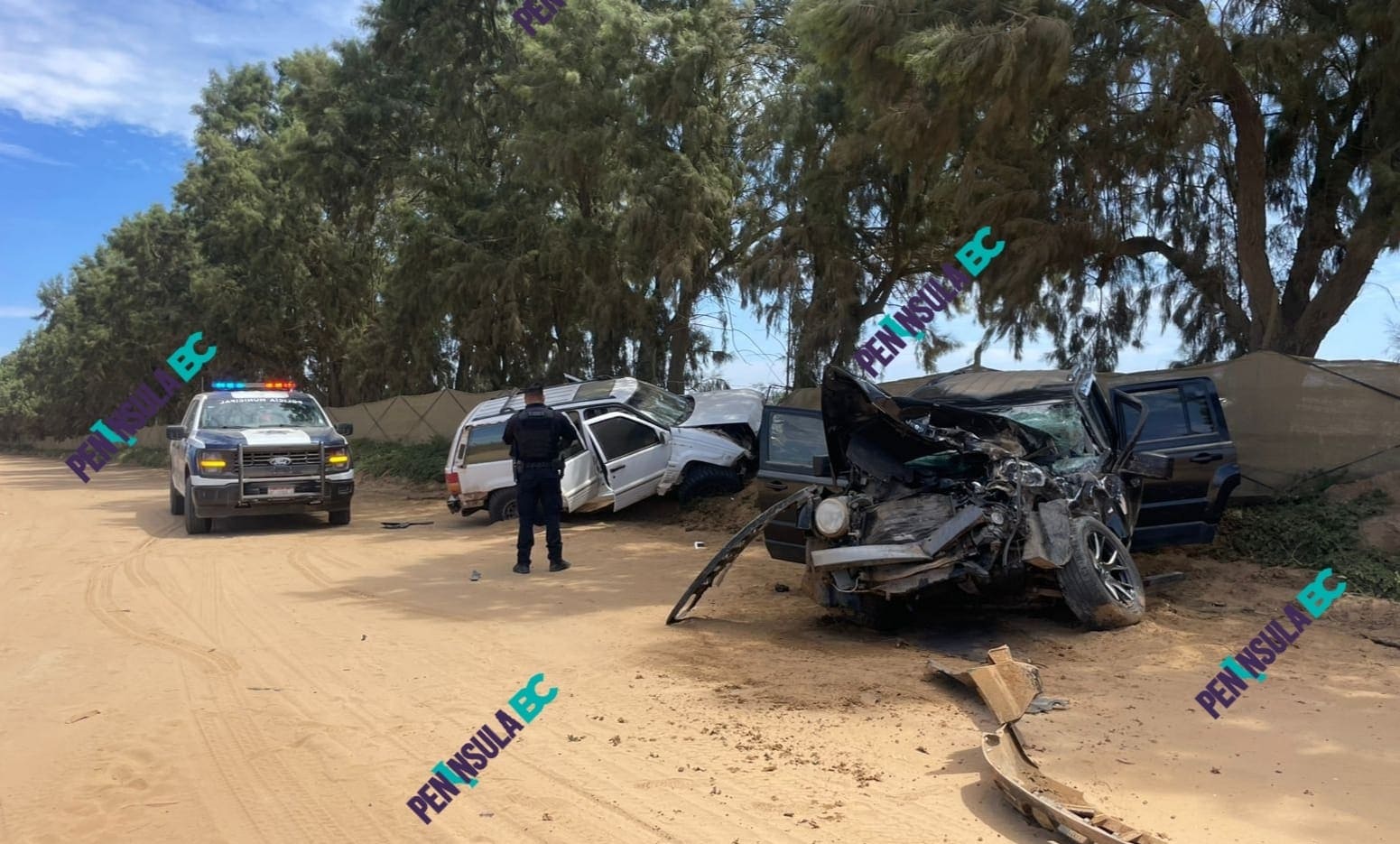 En el lugar se encontraban dos vehículos. El primero fue un Jeep con placas de California, misma que conducía un menor de 17 años de edad.