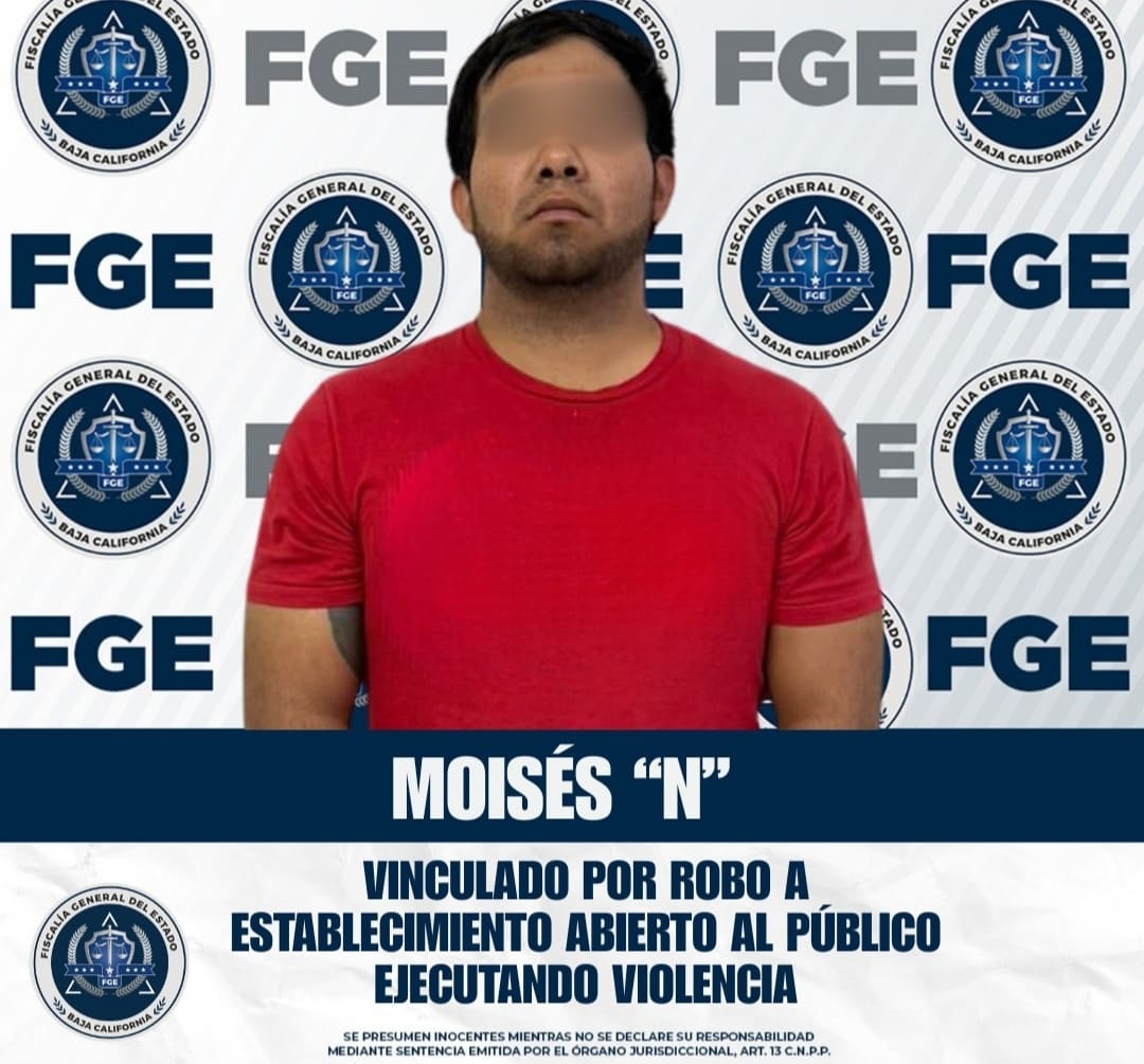 San Quintín, BC.– Por el delito de robo a establecimiento comercial abierto al público, ejecutado con violencia, la Fiscalía General del Estado cumplimentó una orden de aprehensión y obtuvo la vinculación a proceso de Moisés “N” en San Quintín.