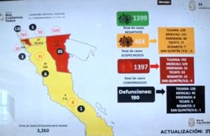 Contabilizan 190 defunciones y 1397 casos confirmados de COVID-19 en BC