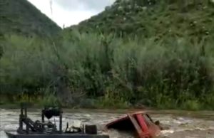 Un conductor que transportaba tomates intentó cruzar el cauce del arroyo San Simón, en San Quintín, por lo...