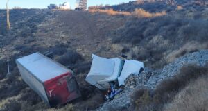 Trailero sufre volcadura en pendiente de El Rosario, al sur de...