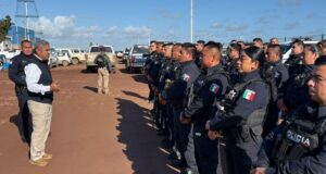 Policías auxilian a conductor tras sufrir una ponchadura en el sur de San Quintín