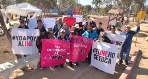Marchan militantes y ciudadanos de San Quintín en defensa del INE
