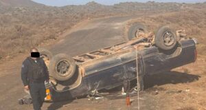 Sufren volcadura en el camino que conduce a la Bahía Falsa...