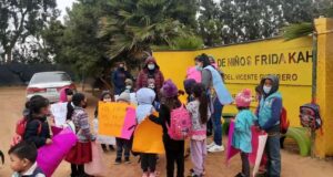 Madres y padres bloquean el preescolar Frida Kahlo, en San Quintín