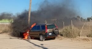 Camioneta se incendia en calle de Vicente Guerrero en San Quintín