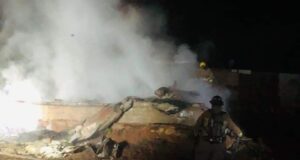 Se incendia caja de trailer dejada tras accidente en San Vicente