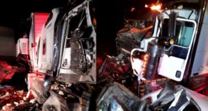Chocan dos tractocamiones en San Vicente, dos hombres resultaron heridos
