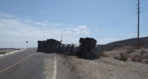Vuelca pipa que transportaba queroseno cerca del Paralelo 28