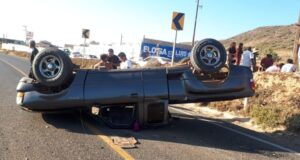 Vuelca tráiler sobre la carretera en Punta Colonet