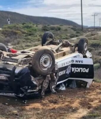 Sufren volcadura oficiales que se dirigían a su turno en El Rosario