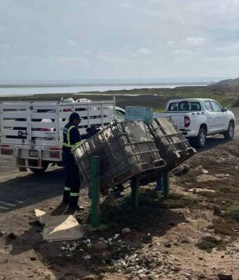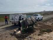 Retiran basura de los contenedores en el camino que conduce a la Bahía Falsa de San Quintín