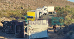Trailero sufre volcadura en inmediaciones de Cataviña