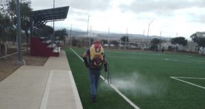 Limpian y fumigan Unidad Deportiva Las Misiones, en San Quintín