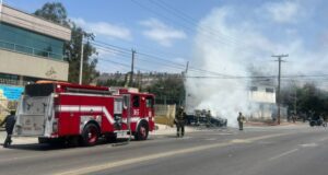Patrulla se incendia mientras circulaban en avenida de Tijuana