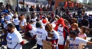 Migrantes protestan en la garita San Ysidro, piden asilo humanitario a...