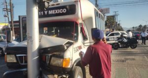 Microbús atropella a mujer, impacta vehículo y semáforo en Ensenada