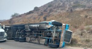 Vuelca tráiler cargado de tomate en curva al norte de Punta...