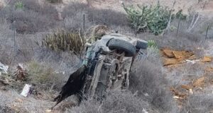 Conductora sufre volcadura en curva del Mosquito en Ensenada