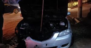 Incendian vehículo en calle de Cumbres de la Presa, en Ensenada